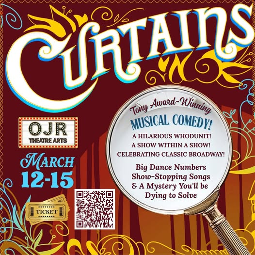 The OJRHS Theatre Arts Musical opens in just over TWO WEEKS on March 12–15! Owen J. Roberts High School is bringing full Broadway energy to the stage with the hilarious, high-stakes musical comedy “Curtains”!