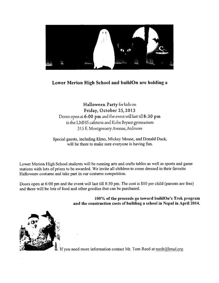 Oct 26th – Halloween Party for Kids at Lower Merion High School 20 Sunday Oct 2013 Posted by KTE in Uncategorized ≈ Leave a comment Great Halloween party for Kids at Lower Merion High School!!! Everyone is welcome, spread the word and bring a friend. It is going to be a lot of fun!! Share this: Click to share on X (Opens in new window) X Click to share on Facebook (Opens in new window) Facebook Like Loading... Related