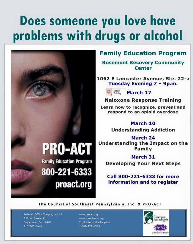 Rosemont :: FREE Education Program Series – Drug and Alcohol 10 Tuesday Mar 2015 Posted by KTE in Uncategorized ≈ Leave a comment FREE Education Program series in Rosemont. If you think someone you love is struggling with drugs or alcohol please join us! No pre-registration required. All are Welcome! Share this: Click to share on X (Opens in new window) X Click to share on Facebook (Opens in new window) Facebook Like Loading... Related