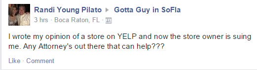 Here is a local example of a person who got sued for negative posts. Radnor Veterinary Hospital fighting negative Yelps…and another example. This woman was ordered to pay 1K for her review.